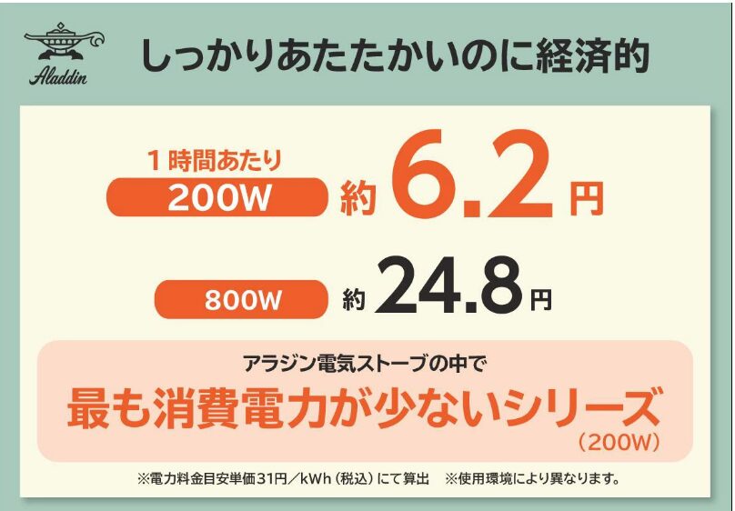 | アラジン AEH-GF80A (弱) | 200W | 約6.2円 |