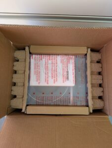 本体はこのような段ボールで届きました。梱包材でしっかり保護されています!