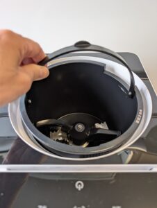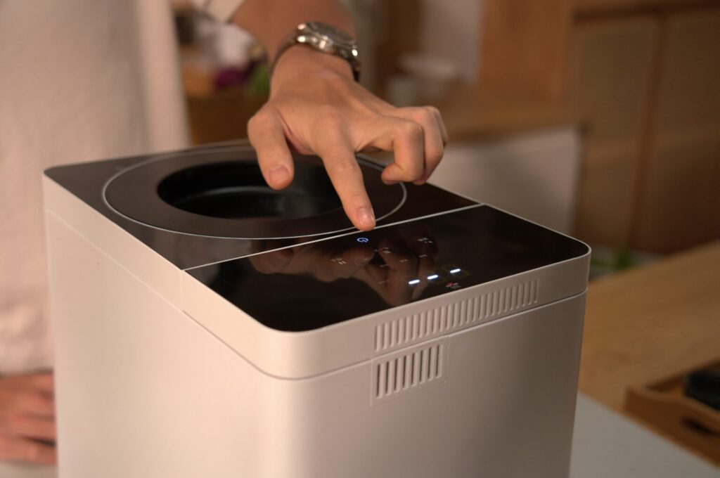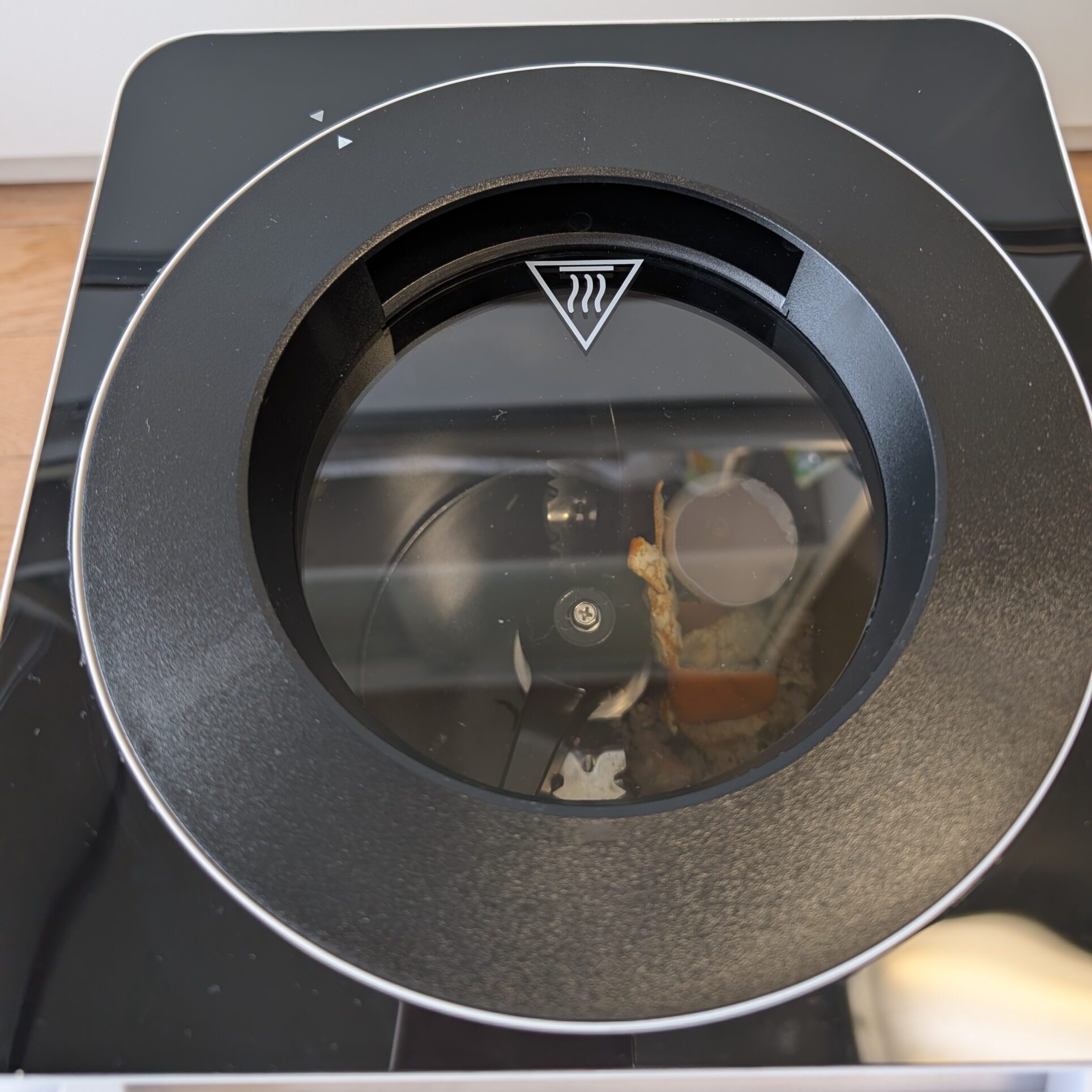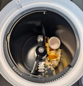 → 蓋が透明なので、粉砕から乾燥へと進み、生ゴミが少しずつ小さくなっていく様子を確認できます。処理の過程が見えるのは、安心感がありますね。